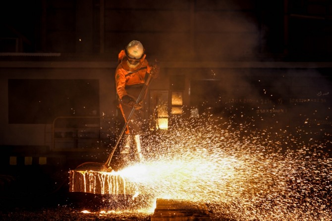 포스코가 인도네시아 현지에서 운영하고 있는 크라카타우포스코 제철소에서 직원이 고로에서 나오는 쇳물을 살펴보고 있다. 사진=크라카타우포스코