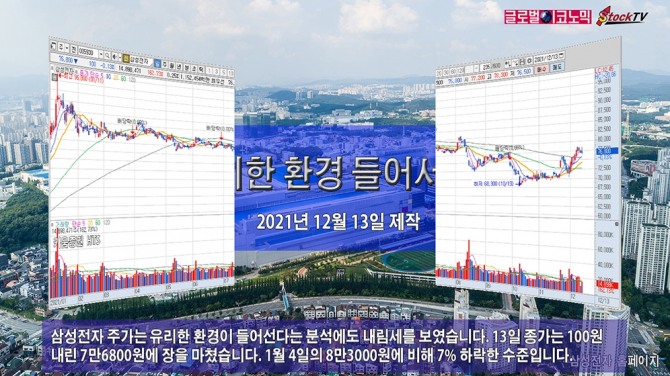 삼성전자 주가는 유리한 환경이 들어선다는 분석에도 내림세를 보였습니다. 13일 종가는 100원 내린 7만6800원에 장을 마쳤습니다. 1월 4일의 8만3000원에 비해 7% 하락한 수준입니다.