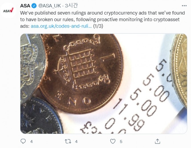 ASA는 암호화폐뿐만 아니라 NFT(대체 불가능한 토큰) 및 팬 토큰에 대해서도 향후 몇 개월 동안 암호화폐 광고를 계속 검토할 것이라고 말했다.