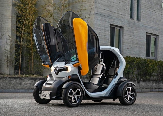 르노 트위지는 프랑스 르노의 초소형 전기차 모델로, 독특한 구조의 캐빈과 뛰어난 주행 안정성 등이 특징이다. 마치 오토바이에 지붕과 문짝 구실을 하는 구조물, 그리고 바퀴 2개를 더 추가한 모양새다. 이는 철저한 경량화를 위한 방책이기도 하다.