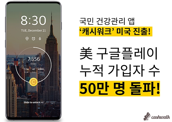 넛지헬스케어가 운영하는 국민 건강관리 앱 '캐시워크'가 미국 구글플레이에서 누적 가입자 수 50만 명을 돌파하며 미국 헬스·피트니스 앱 시장에 성공적으로 안착했다고 21일 밝혔다.지난해 12월 공식 론칭한 미국 캐시워크는 '걷기' 운동의 습관화에 강력한 동기를 부여하는 실용성에 호응한 미국 사용자들이 늘어나면서 누적 가입자 수가 꾸준히 증가했다. 론칭 약 반 년 만인 지난 6월 기준 10만 명을 돌파한 후, 출시 1년 만에 50만 명을 넘어섰다.