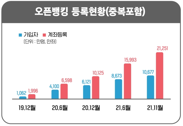 전면 시행 2주년 맞은 오픈뱅킹…사용자 3000만 명, 계좌수 1억개 돌파