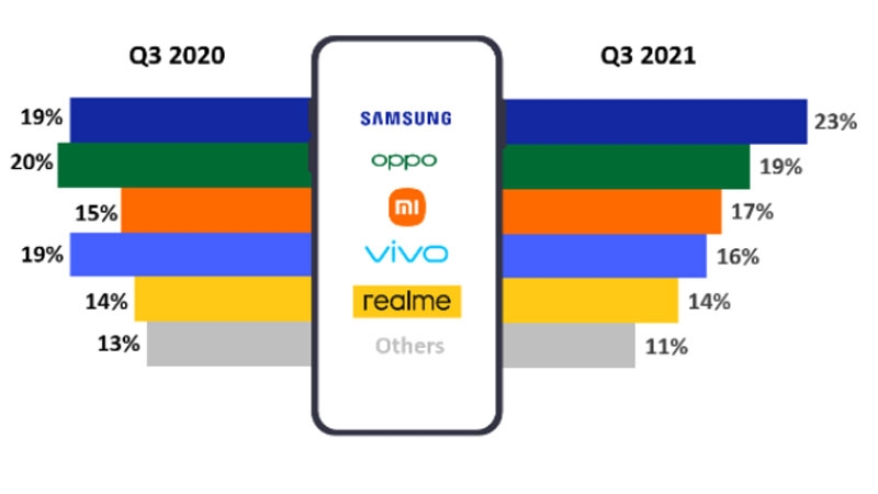 카운터포인트의 자료에 따르면 동남아 시장 전체의 2021년 3분기 스마트폰 출하량은 전년 동기 대비 11% 감소한 것으로 조사됐다. 하지만 신종 코로나 바이러스 감염증(코로나19)으로 인해 주춤했던 생산은 3분기 말에 시장이 다시 열리기 시작하면서 회복 중이다.
