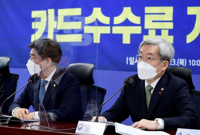 고승범 금융위원장이 23일 서울 여의도 국회에서 열린 ‘카드수수료 개편방안 당정협의’에서 발언을 하고 있다. [사진=뉴시스]