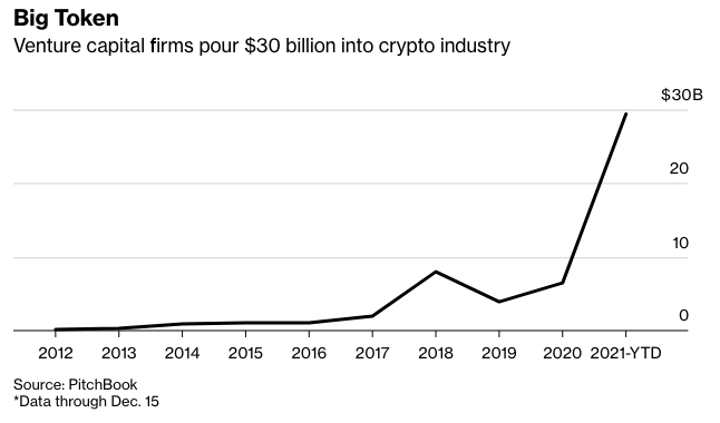 시장조사기관 핀치북(Pinchbook)에 따르면 올해 벤처캐피털 머니가 암호화폐로 유입된 금액은 300억 달러(약 35조 원)로 예년 수준을 훨씬 능가했다. 특히 지난 10월 비트코인 선물거래 펀드(ETF)가 마침내 미국 시장을 강타하면서, 비트코인이 사상 최고치를 경신하면서 벤처캐피털 머니에 대한 관심이 더 높아졌다.