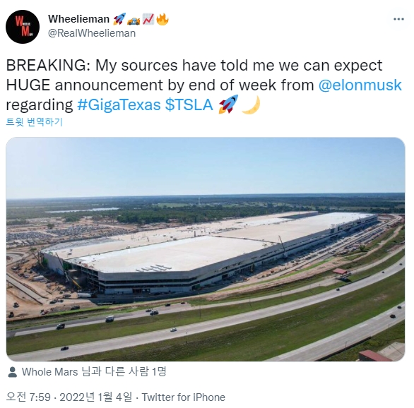 테슬라 마니아 ‘윌리맨’이 트위터에 올린 기가팩토리5와 관련한 게시물. 사진=트위터이미지 확대보기
