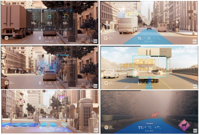 먼저 카메라와 같은 센서를 통해 차량 주변을 인식하고, 도로 상황과 차량 주변의 유용한 정보들을 운전자의 시선이 머무는 곳에 표시해, 사용자가 안전하고 편리한 주행을 이어갈 수 있게 한다. ▲차량 상태 정보 ▲주행 속도 ▲내비게이션 길 안내 화살표 ▲전방 추돌 경고 아이콘 ▲차선 변경 시 사각지대 알림 등의 정보로 운전자가 안전하게 주행할 수 있도록 돕는다.