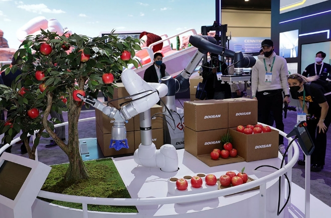 이미지 확대보기두산이 차린 ‘CES 2022’ 전시관에서는 두산이 추구하는 미래상을 확인할 수 있다.