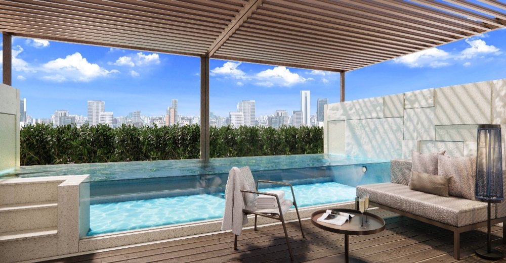 전 객실에서는 넷플렉스를 포함한 다양한 OTT 콘텐츠를 55인치 스마트 TV를 통해 즐길 수 있다. 3층의 테라스 객실에는 프라이빗 인피니티 풀과 선베드가 마련됐다.