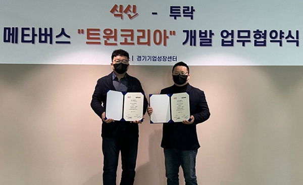 식신(대표 안병익)의 플랫폼 '트윈코리아(TWINKOREA)'는 3D게임·VR메타버스 개발사 '투락'(대표 연경흠)과 MOU를 체결했다고 10일 밝혔다.'트윈코리아'는 실제 물리적 공간의 식당과 상점의 정보를 담은 현실 공간 메타버스 서비스로 지난 12월에 진행한 서울지역 사전 청약에서 주요 지역 셀이 1분 만에 완판되는 등 많은 관심을 받고 있다.