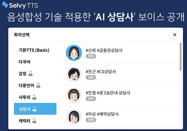셀바스AI가 AI음성합성 기술을 적용한 'AI 상담사' 보이스를 공개했다고 11일 밝혔다. 셀바스 AI는 자체 AI 음성합성(TTS, Text To Speech) 기술을 고도화하여 실제 상담사처럼 대화가 가능한 'AI 상담사' 구현에 집중했다. 특히 사람 목소리의 고주파대역까지도 학습이 가능한 인공지능 기반 '보코더(vocoder) 기술'을 통해 고품질의 합성음 확보에도 성공했다.