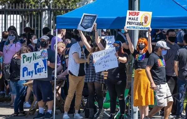 지난해 7월 27일 액티비전 블리자드 본사 앞에서 직원들이 파업을 진행하는 모습. 사진=Getty