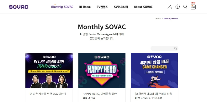 이어 내달부터 오는 12월까지 SOVAC은 매달 ▲탄소중립 ▲지역재생 ▲사회혁신 ▲DE&I(장애, 젠더, 문화예술 등) ▲청소년문제 ▲사회적기업 생태계 확대 등 소주제로 사회적기업, 소셜벤처, 일반기업, 비영리재단, 학계, 일반인 등이 참여해 개최된다.