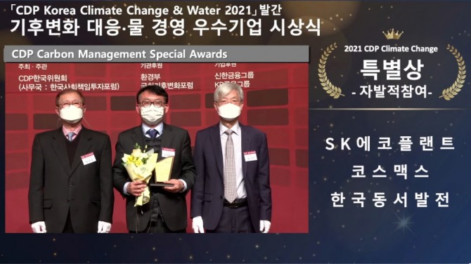 이미지 확대보기한국동서발전은 전 세계 기업의 환경 경영을 평가하는 탄소정보공개프로젝트(CDP)에서 3년 연속 탄소경영 특별상을 수상했다.