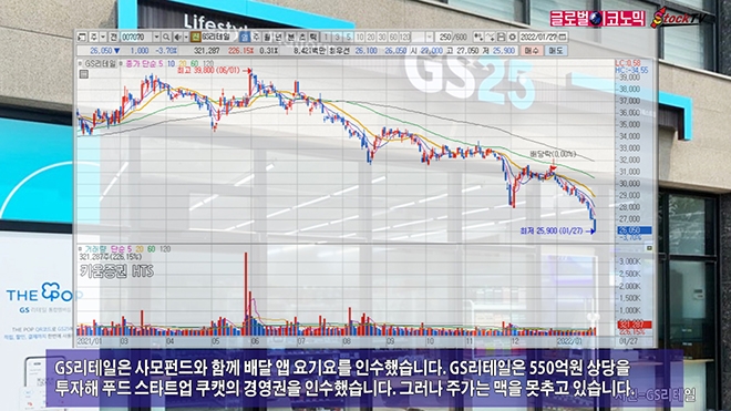GS리테일은 사모펀드와 함께 배달 앱 요기요를 인수했습니다. GS리테일은 550억원 상당을 투자해 푸드 스타트업 쿠캣의 경영권을 인수했습니다. 그러나 주가는 맥을 못추고 있습니다.