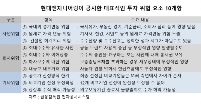 [지배구조 분석] 현대엔지니어링이 공시한 공모투자 위험요소 10개항