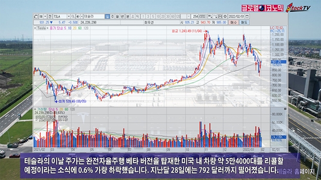 테슬라의 이날 주가는 완전자율주행 베타 버전을 탑재한 미국 내 차량 약 5만4000대를 리콜할 예정이라는 소식에 0.6% 가량 하락했습니다. 지난달 28일에는 792 달러까지 떨어졌습니다.