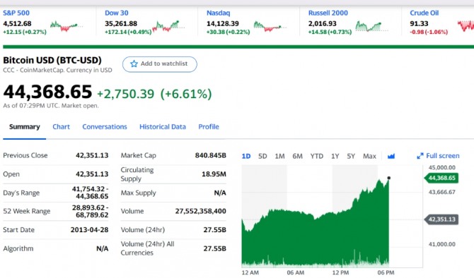 이런 가운데 미국 전기자동차 업체 테슬라가 지난해 말 기준으로 약 2조3900억 원어치 비트코인을 보유한 것으로 나타났다. 테슬라는 이날 미국 증권거래위원회(SEC)에 이러한 내용의 보고서를 제출했다. 테슬라는 작년 1분기에 비트코인을 대량 구매한 것으로 나타났다. 12월 말 기준 보유 중인 비트코인 시장 가치는 19억9000만 달러 이다.