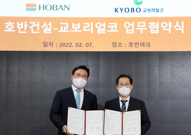 이날 업무협약식에는 박철희 호반건설 대표와 강영욱 교보리얼코 대표 등이 참석한 가운데 진행됐다. 이번 협약을 통해 호반건설·교보리얼코는 프롭테크 분야의 오픈이노베이션과 ESG 분야 신사업 등에 함께 힘쓰기로 했다.