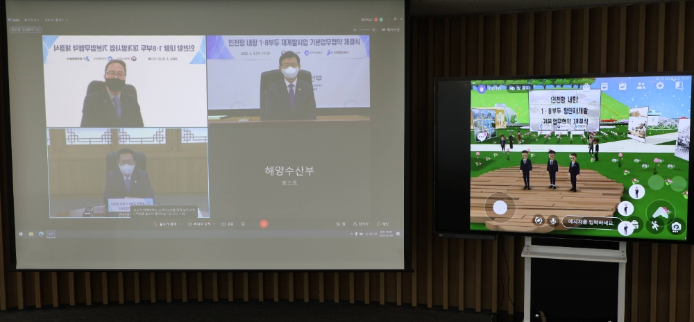 이미지 확대보기해당 업무협약은 가상공간인 메타버스에서 진행됐으며, 인천항 내항1 8부두를 해양관광·문화산업으로 육성하기 위해 상호 업무분담을 통한 공동협력을 목적으로 이뤄졌다.