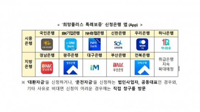 중소벤처기업부, '희망플러스 특례보증' 신청 은행에 광주은행과 경남·전북은행 추가 11곳