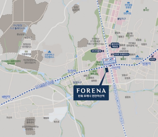 또 KTX‧SRT 노선이 지나가는 천안아산역(도보 5분)‧지하철 1호선 아산역(도보 1분)과 인접한 더블역세권 단지다. KTX 이용 시 서울역까지 40분대, SRT 이용 시 수서역까지 30분대로 접근할 수 있다. 부산(110분)‧대구(70분)‧광주(70분) 등 전국 주요 도시로 2시간 이내 이동할 수 있다.