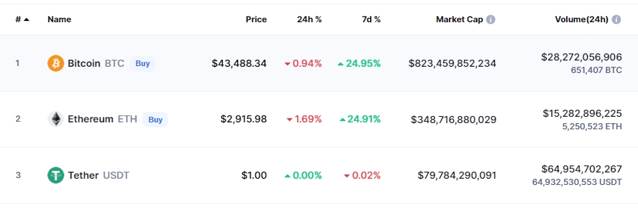 이미지 확대보기한편, 비트코인은 3일 오후 4시 24분 현재 코인마켓캡에서 전일 대비 0.94% 하락해 4만3488달러에 거래되고 있다. 이더리움(ETH)도 1.69% 내려가 2915달러 수준에 머물고 있다. 비트코인과 함께, 더 넓은 암호화 통화 시장은 이번 주 초반의 펌프가 끝난 후 약간의 휴식을 취하고 있는 것으로 보인다. 지난주 최고의 암호화폐는 테라의 LUNA 코인으로 지난 7일 동안 79.25% 상승했으며 현재 93달러에 거래 중이다.