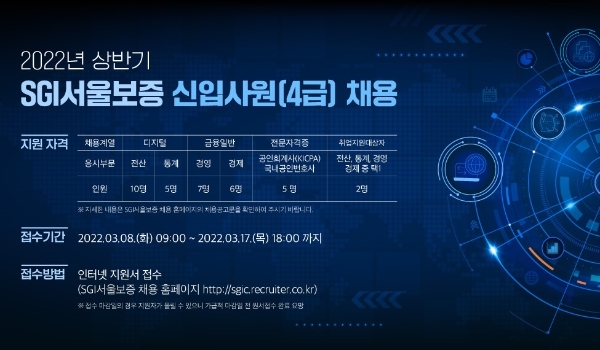 지원자는 SGI서울보증보험 홈피 통해 17일까지 접수 가능