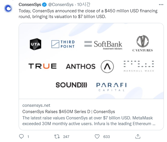기업가치 70억 달러로 급증…웹3 지갑 '메타마스크'와 '인퓨라'가 주력 제품