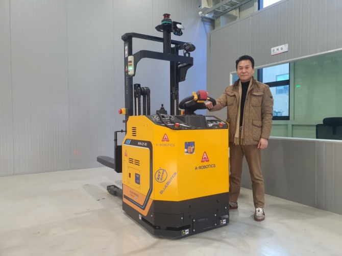 이미지 확대보기권희철 에이로보틱스 사장은 산업용 자율주행 차량 분야인 ‘지게차형 AMR(이하 무인지게차)’ 분야에서 관련업체들의 관심을 받고 있다. 에이로보틱스는 무인지게차 개발에서부터 운용과 관리 등의 원스톱 솔루션을 제공하고 있다.
