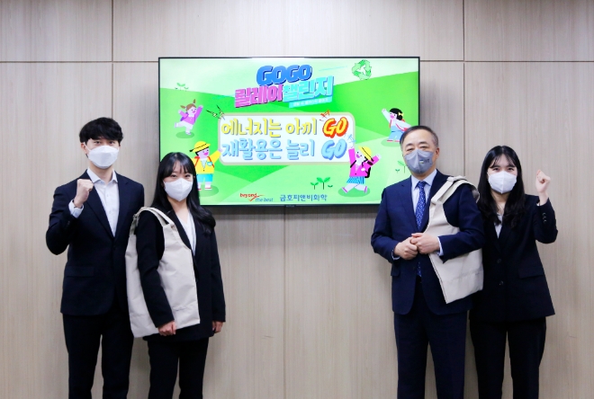 금호피앤비화학은 ‘에너지는 아끼GO! 재활용은 늘리GO!’를 실천 문구로 선정하고 이번 고고챌린지 참여를 계기로 사내 ‘업사이클링 제품 사용 캠페인’도 진행한다. 현재 당사에서 배부한 에코백을 시작으로 장기적 캠페인을 지속할 것이라 전했다.