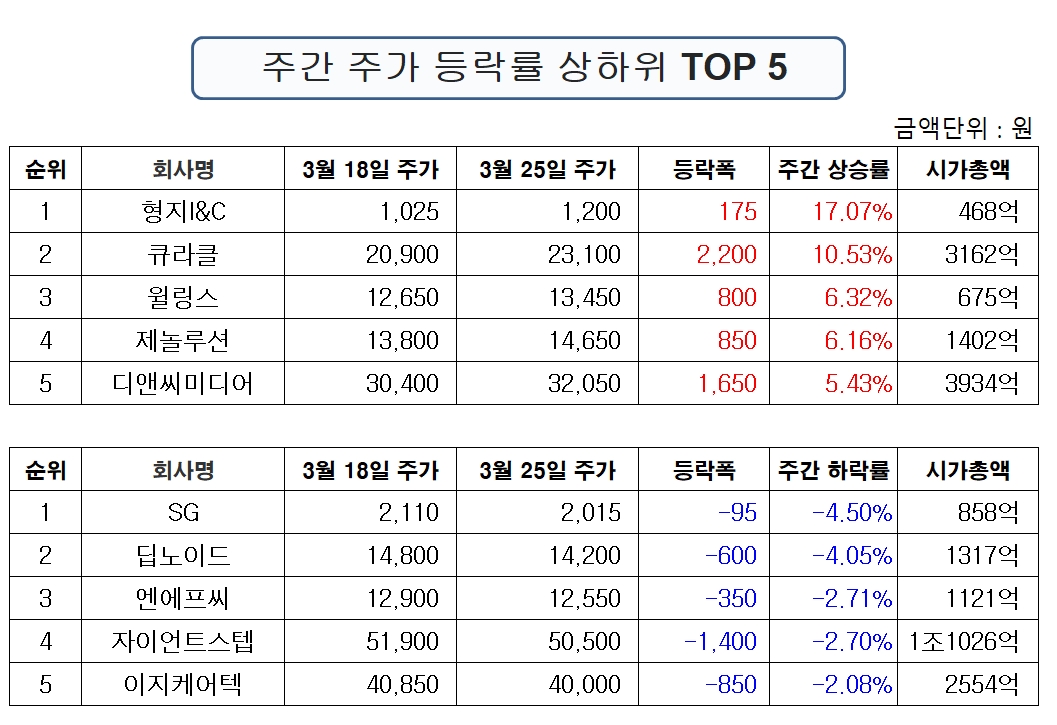 이미지 확대보기주간기준 상승률 상위 종목은 다음과 같다.