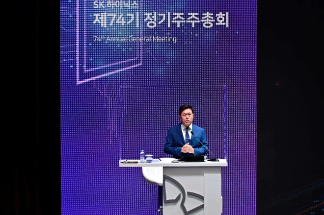 이미지 확대보기박정호 SK하이닉스 부회장은 30일 경기도 이천 본사에서 열린 정기 주주총회에서 이같이 말했다. 박 부회장은 지난해 3월 대표이사 취임 후 처음으로 주총을 주재했다.