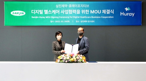 이미지 확대보기이날 양사는 △기존 삼진제약 의약품 사업과 연계된 디지털 치료제의 비즈니스 모델 수립 및 세부 수행 안 기획 △휴레이포지티브가 추진 중인 디지털 헬스케어 사업 분야에 대한 상호 협력 등에 있어 각 사가 보유하고 있는 역량과 자원을 활용해 디지털 헬스케어 분야의 신규 사업을 공동 모색하고 이를 추진키로 했다.