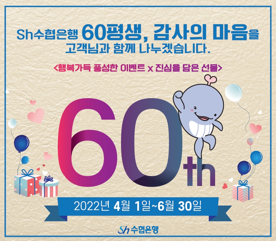 수협은행 관계자는 “올해로 창립 60주년을 맞은 수협은행이 그동안 믿고 거래해 주신 모든 고객님들께 감사의 마음을 전하고, 새로운 고객님들과 함께 더욱 크게 성장하는 도약의 발판을 마련코자 이번 이벤트를 준비했다”며 “수협은행은 최근 국제신용평가기관 무디스로부터 신용등급 상향평가를 받는 등 ESG경영 실천을 통해 대한민국 대표 녹색‧친환경은행으로 인정받고 있다. 앞으로도 5000만 국민과 함께 100년 지속성장하는 은행으로 거듭날 것이다”고 말했다.