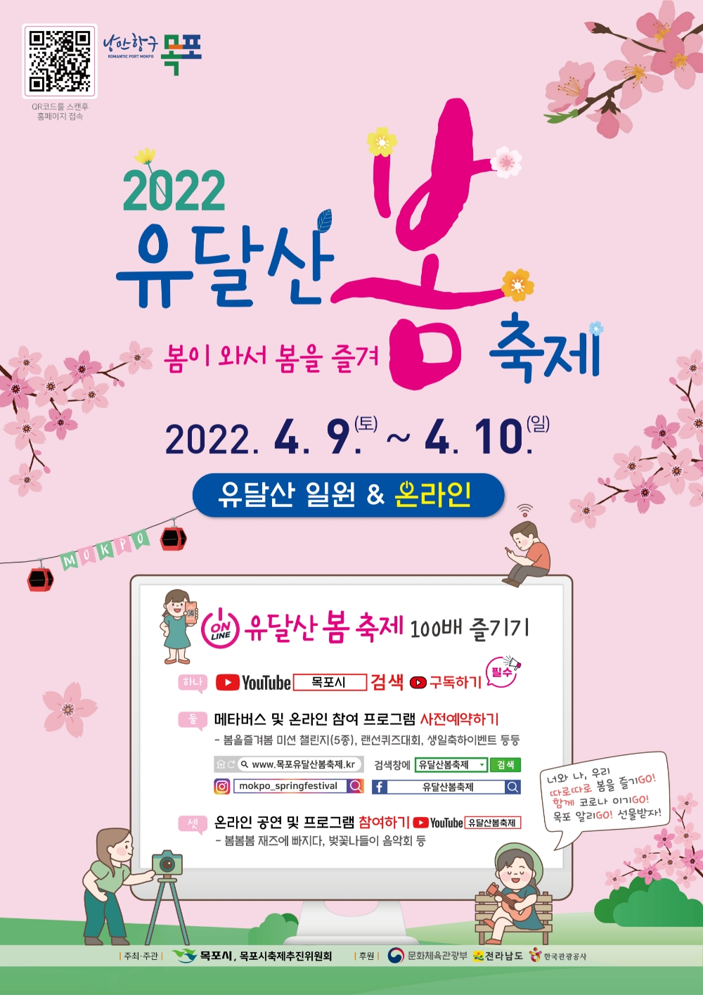 이 밖에 ‘유달산 봄 플로깅’, ‘MOKPO 퍼즐 포토존 인증’ 등 온ㆍ오프라인을 연계한 참여 프로그램이 안전을 위해 사전예약제로 운영된다. ‘목포시’ 유튜브 채널 구독 및 SNS 참여에 따른 경품 이벤트도 진행된다.