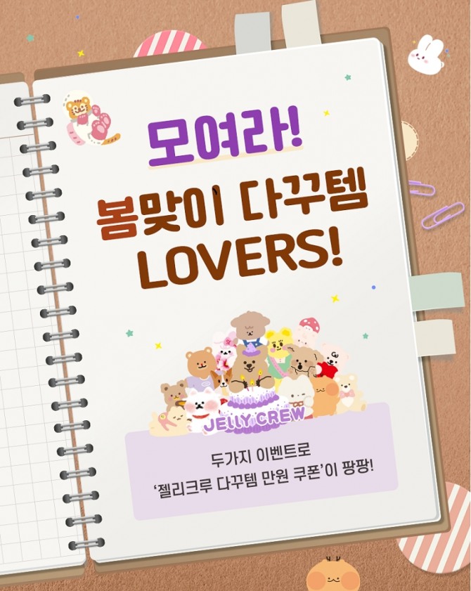 신한은행은 젤리크루 인기작가의 한정판 상품을 구매할 수 있는 '모여라 봄맞이 다꾸템' 쿠폰증정 이벤트를 4월8일까지 진행한다.