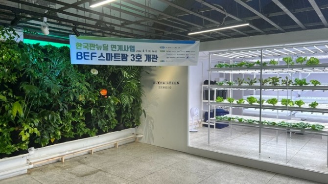 이미지 확대보기스마트팜은 농산물 생산, 가공, 유통의 전 과정에 정보통신기술(ICT)을 활용하는 사회적 도시농업 시설로, 'BEF 스마트팜 3호점'을 통해 상추, 청경채 등 엽채류를 직접 재배해 전시·판매하며 이와함께 친환경 공기정화를 위한 수직정원 사업도 진행할 예정이다.