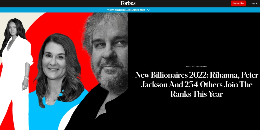 이미지 확대보기이밖에 올해 명단에 따르면 미국 팝가수이자 패션 사업가로 활동 중인 리한나가 순자산 170억달러(약 20조7000억원)을 소유한 것으로 나타나 새로운 억만장자로 이름을 올렸다.