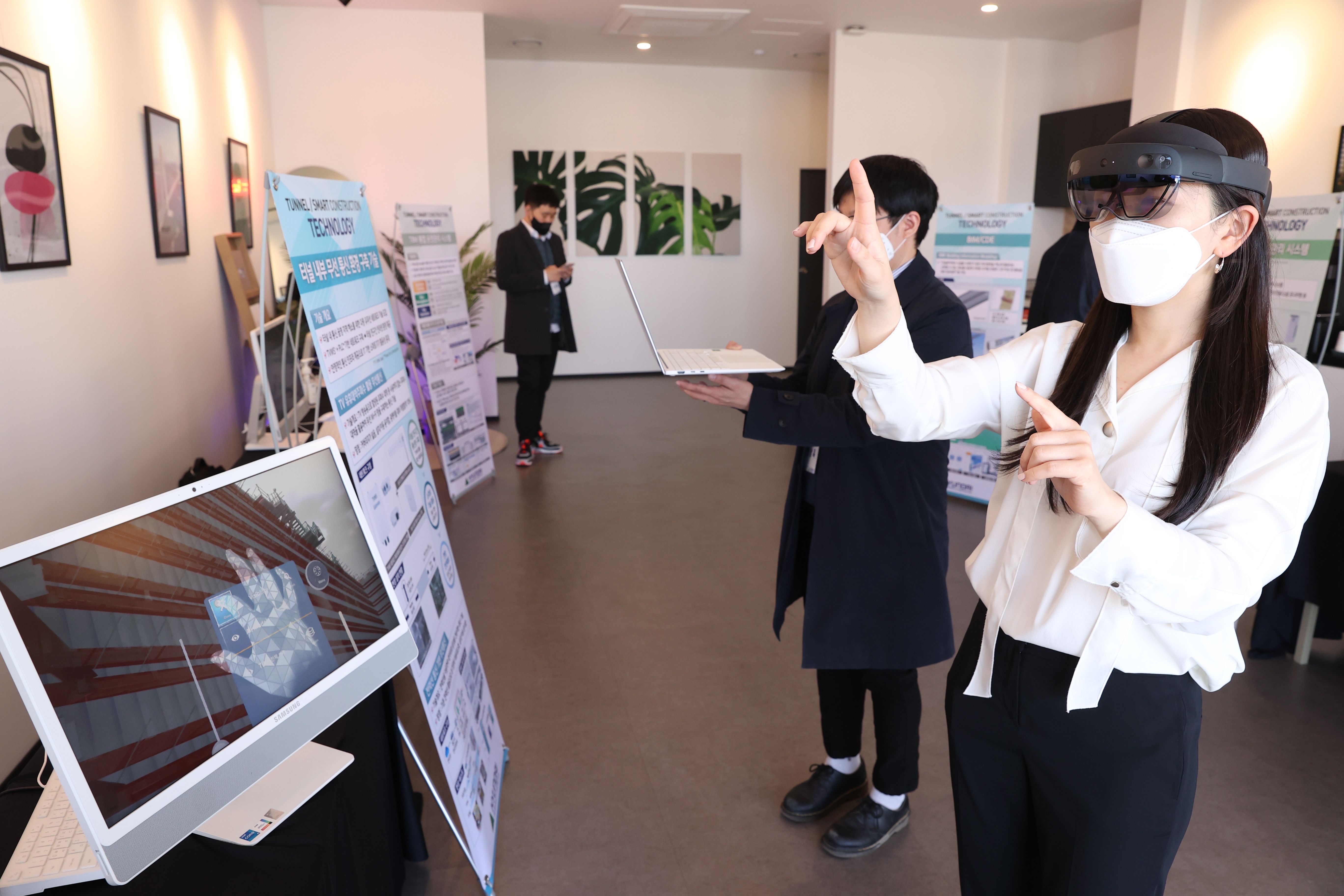 터널 내부에서도 스마트글래스를 활용해 실시간으로 본사·사무실과 원격 화상 회의를 수행하고, 홀로렌즈와 연계한 AR 기반 품질관리업무에 활용하고 있다. 또한, 무인 현장 관리에 활용 가능한 원격드론 원격드론·무인지상차량 등도 터널 현장에 투입해 AI 기반 안전관리 및 라이다(LiDAR) 기반 측량 업무 무인화를 실현하고 있다.
