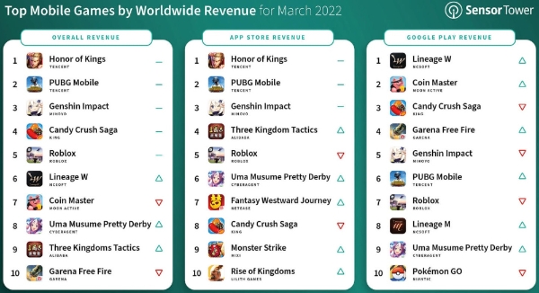 왕자영요·배틀그라운드 모바일·원신 3개월째 '톱3'