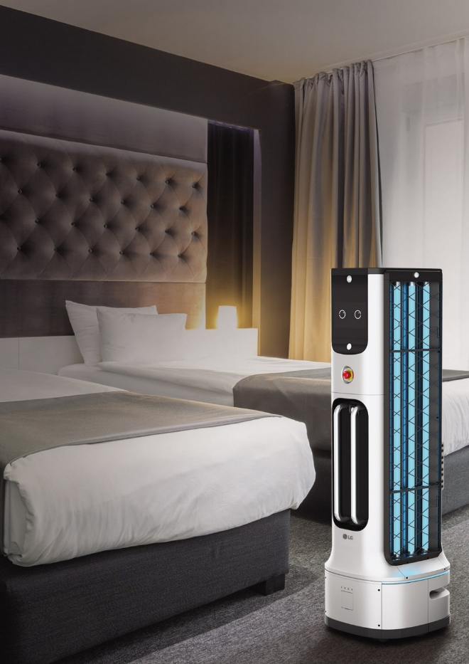 LG 클로이 UV-C봇은 신종 코로나바이러스 감염증(코로나19)로 인해 방역이 더욱 중요해진 시기에 객실이 많은 호텔이나 병원과 같이 분리된 공간이 많은 건물에서 비대면 방역 작업을 할 수 있는 로봇이다. 시간의 제약 없이 비대면 방역을 수시로 진행할 수 있는 것이 장점이다.
