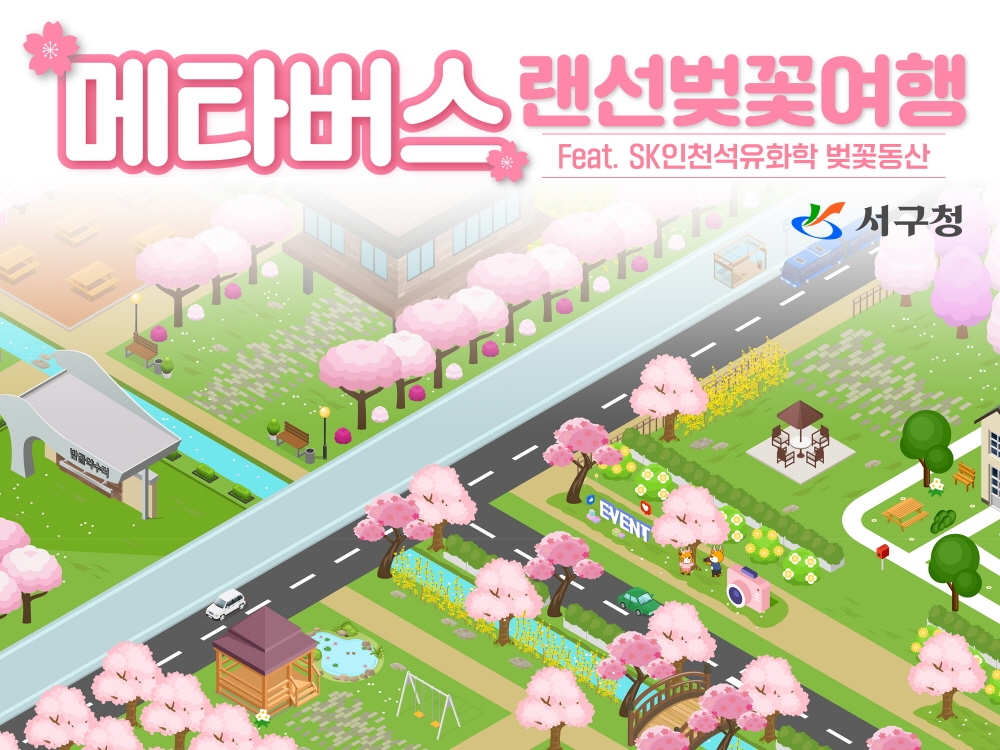 서구는 ‘서구 봄 만끽! 메타버스 랜선벚꽃여행’이라는 주제로 선보이는 메타버스 내 공간을 통해 그동안 거리두기로 인해 자유로운 봄나들이 어려웠던 구민들에게 반가운 소식을 전하기 위해 이번 이벤트를 마련했다.