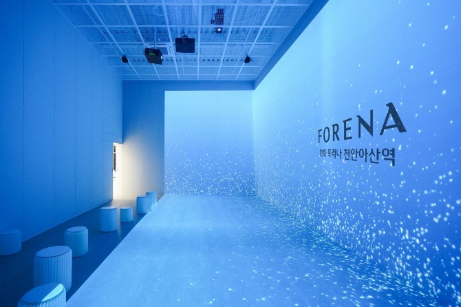 이미지 확대보기뿐만 아니라 관람객이 포레나의 브랜드 아이덴티티와 단지 특장점을 자연스럽게 인지 할 수 있도록 입체영상관을 조성했다. 6개의 빔프로젝터를 활용한 프로젝션 맵핑(대상물 표면에 빛으로 이뤄진 영상을 투영하는 미디어 아트 기법)은 다양한 정보를 생동감 있고 흥미롭게 보여준다.