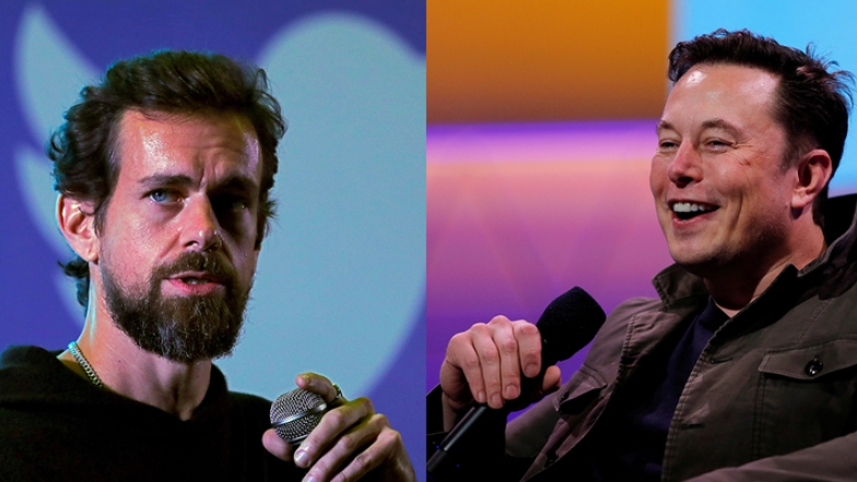 잭 도시 트위터 창업자(왼쪽)와 일론 머스크 테슬라 CEO. 사진=로이터