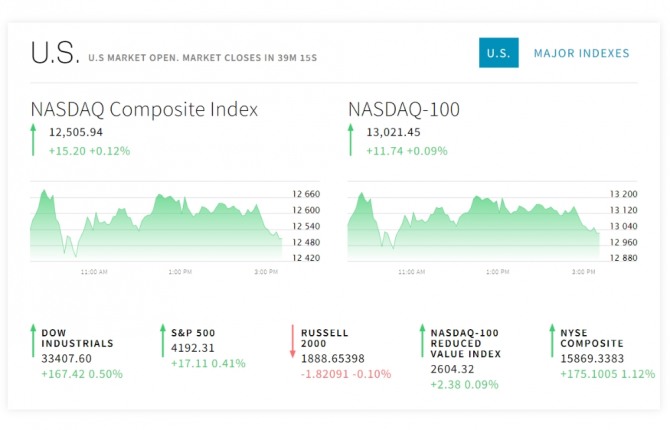 이미지 확대보기28일 뉴욕증시에 따르면 기술주들이 반등하면서 오름세를 보였다. 뉴욕증권거래소(NYSE)에서 다우존스30산업평균지수와 스탠더드앤드푸어스(S&P)500지수는 놀랐다. 그러나 기술주 중심의 나스닥 지수는 막판 하락 반전했다. 전날 나스닥지수는 4% 가까이 하락해 2020년 9월 이후 최대 하락률을 보였다.