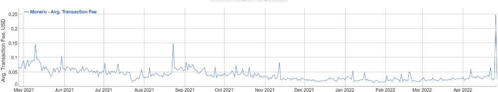 모네로(XMR) 수수료는 최근 몇 일 사이에 급등했다. 지난 26일, 평균 XMR 수수료는 0.24달러를 넘어섰다. 이 지표는 일반적으로 0.05달러 미만이었다.