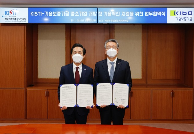 이미지 확대보기기술보증기금은 2일 한국과학기술정보연구원 대전 본원에서 '중소기업 개방형 기술혁신 지원을 위한 업무협약'을 체결했다.