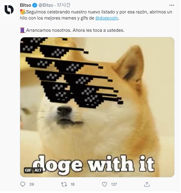 이미지 확대보기4일 트위터에 따르면 멕시코 최고의 암호화폐 거래소 비트소가 밈 암호화폐 도지코인에 대한 지원을 추가했다.