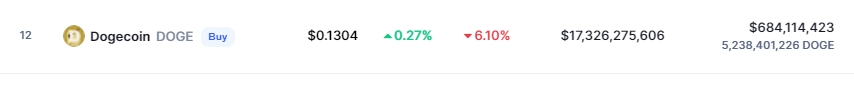 이미지 확대보기한편, 5일(한국시간) 0시 50분 현재 코인마켓캡(CoinMarketCap) 데이터에 따르면 도지코인(DOGE) 가격은 전일 대비 0.27% 상승해 0.1304달러 수준에서 거래되고 있다. 도지코인은 장중 한 때 최저 0.1274달러까지 내려갔으나 13센트를 조금 웃도는 수준으로 회복했다. 도지코인은 지난 7일 동안 6.1% 하락했다.